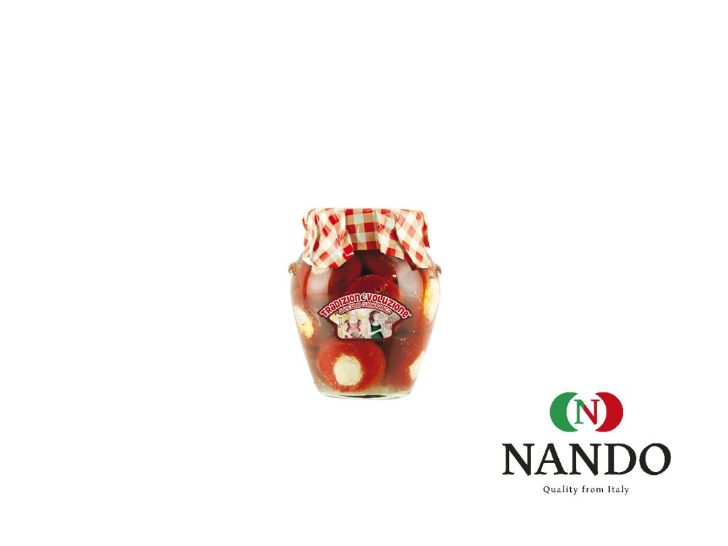 Pikantní papričky plněné kozím sýrem, nakládané v oleji.